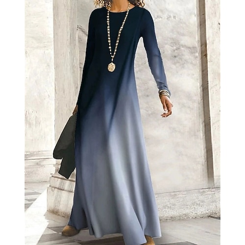 Per donna Abito Lungo Maxi Abito Abito Boho Elegante Vintage Moda Quotidiano All'aperto Spiaggia Vestibilità regolare Ombre Grafico Farfalla Manica Lunga Girocollo Giallo Chiaro Grigio nero Nero