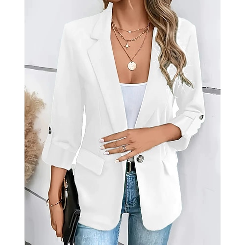 Per donna Blazer Confortevole Traspirante Tasca Elegante Casual Semplice Ufficio Streetwear Casuale Abbigliamento quotidiano Doppiopetto Regolare Collo ripiegato Vestibilità regolare Manica Lunga