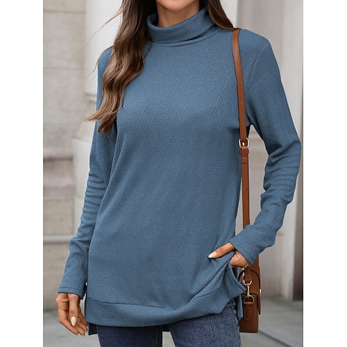 Per donna Blusa Tinta unica Elegante Casual Manica Lunga Dolcevita Top Regolari Quotidiano Giallo Rosa Blu marino Grigio scuro Azzurro Primavera Autunno Inverno