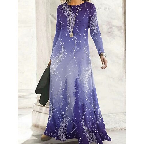 Per donna Abito Lungo Maxi Abito Vestito Casual Vestito a ruota Abito Boho Elegante Vintage Quotidiano All'aperto Weekend Vestibilità regolare Ombre Floreale Manica Lunga Girocollo Blu Viola Verde