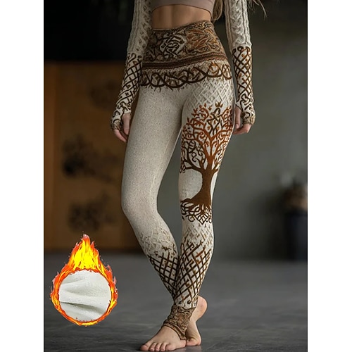 Leggings Boho Viking da donna Leggings Confortevoli Vacanza Moda Vintage Full Length Alta Vita Grafica Motivo Geometrico Stampa Fleece Termici Caldi Confortevoli Elasticizzati Vacanza Street Marrone