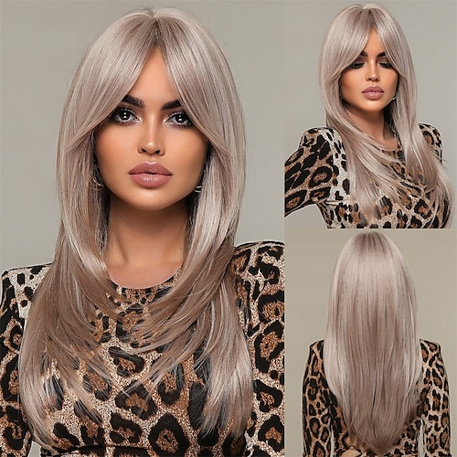 parrucche marroni da donnaparrucche lunghe a strati con frangia a tenda parrucche in fibra sintetica resistenti al calore