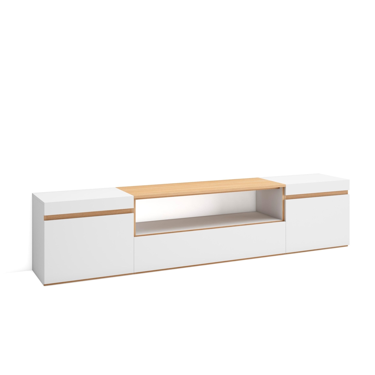 SKRAUT HOME TV-Schrank, Lowboard, 200x45x35cm, Für TV-Geräte bis zu 80", Fernsehtisch, Weiß und Eiche Soft