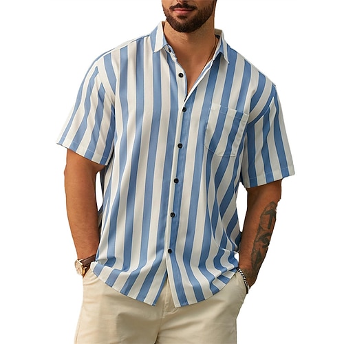 Per uomo Camicia Camicia Estiva Camicia casual Camicia da Spiaggia Camicia con Bottoni Verde chiaro Blu Verde Grigio Manica Corta A righe Bavero Vacanza Camicia hawaiana Abbigliamento Poliestere Moda