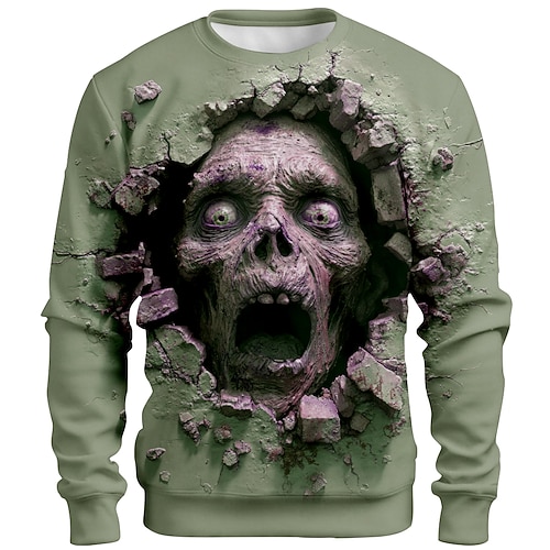 Per uomo Zombi 3D Felpa Punk Festa Gotico Manica Lunga Girocollo Vacanza Verde chiaro Verde Cachi Girocollo 3D Tutte le stagioni progettista S M L XL XXL XXXL