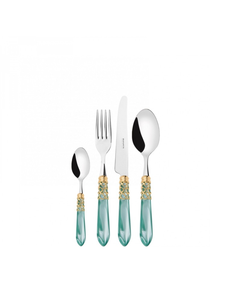 melodia goldring, aquamaringrüner griff, 24-teiliges stahlbesteckset, kompakte box, casa bugatti