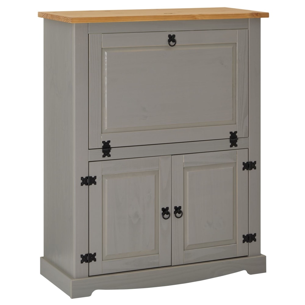 Meuble bar à vin 16 bouteilles en bois massif gris/brun