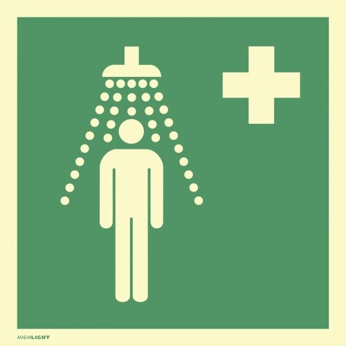 Aufkleber Notdusche, ISO 7010, PVC-U selbstklebend, langnachleucht., 160-mcd, 200x200 mm