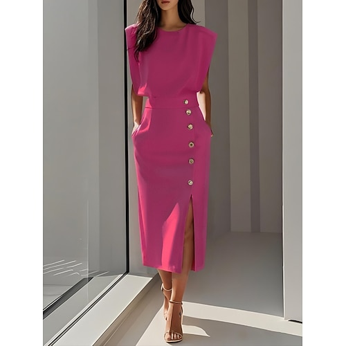 Per donna Abito Midi Abito nero Vestito Casual Elegante Moda Moderno Quotidiano All'aperto Uscire Vestibilità regolare Semplice Senza Maniche Girocollo Blu Nero Rosa Verde militare Estate Primavera