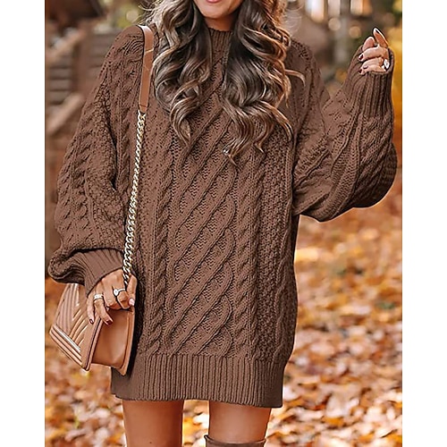 Per donna Mini Abito Abito in maglia Vestito Casual Elegante Moda Moderno Quotidiano Uscire Weekend Vestibilità regolare Semplice Manica Lunga Girocollo Nero Rosa Vino Cachi Primavera Autunno Inverno
