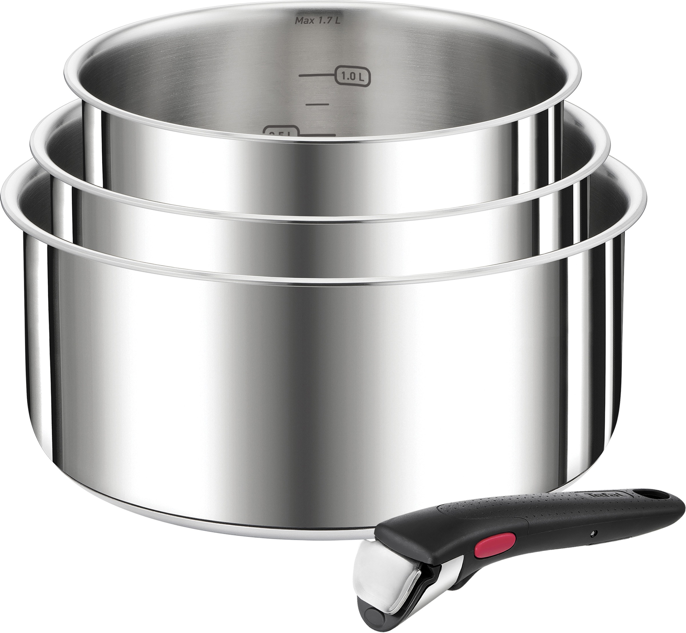 Topf-Set TEFAL "L898S4 Ingenio Preference, Topfset Induktion, stapelbar, platzsparend", silber (edelstahlfarben), B:22,5cm H:11,8cm L:27,8cm, Töpfe, hochwertiger Edelstahl, für alle Herdarten geeignet