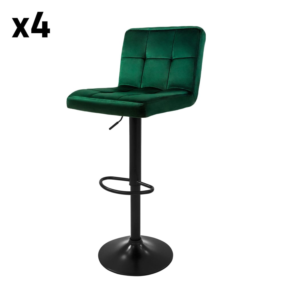 Set di 4 sgabelli da bar in velluto, verde