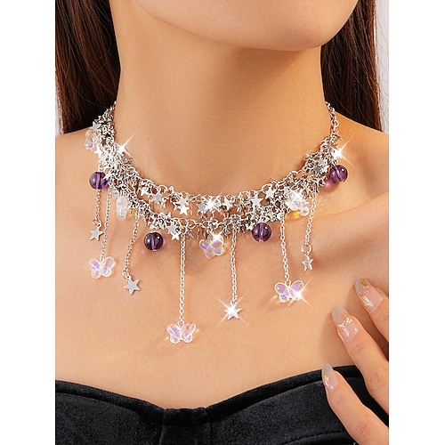 stella femminile collana girocollo con ciondolo a farfalla - gioielli scintillanti a catena a strati per feste e serate fuori eventi speciali