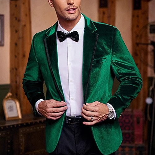 Per uomo Blazer di velluto Colletto ad incastro Natale Festa Brillanti Tinta unita Blazer di velluto Blu Nero Rosso Vestibilità su misura Monopetto Un Bottone