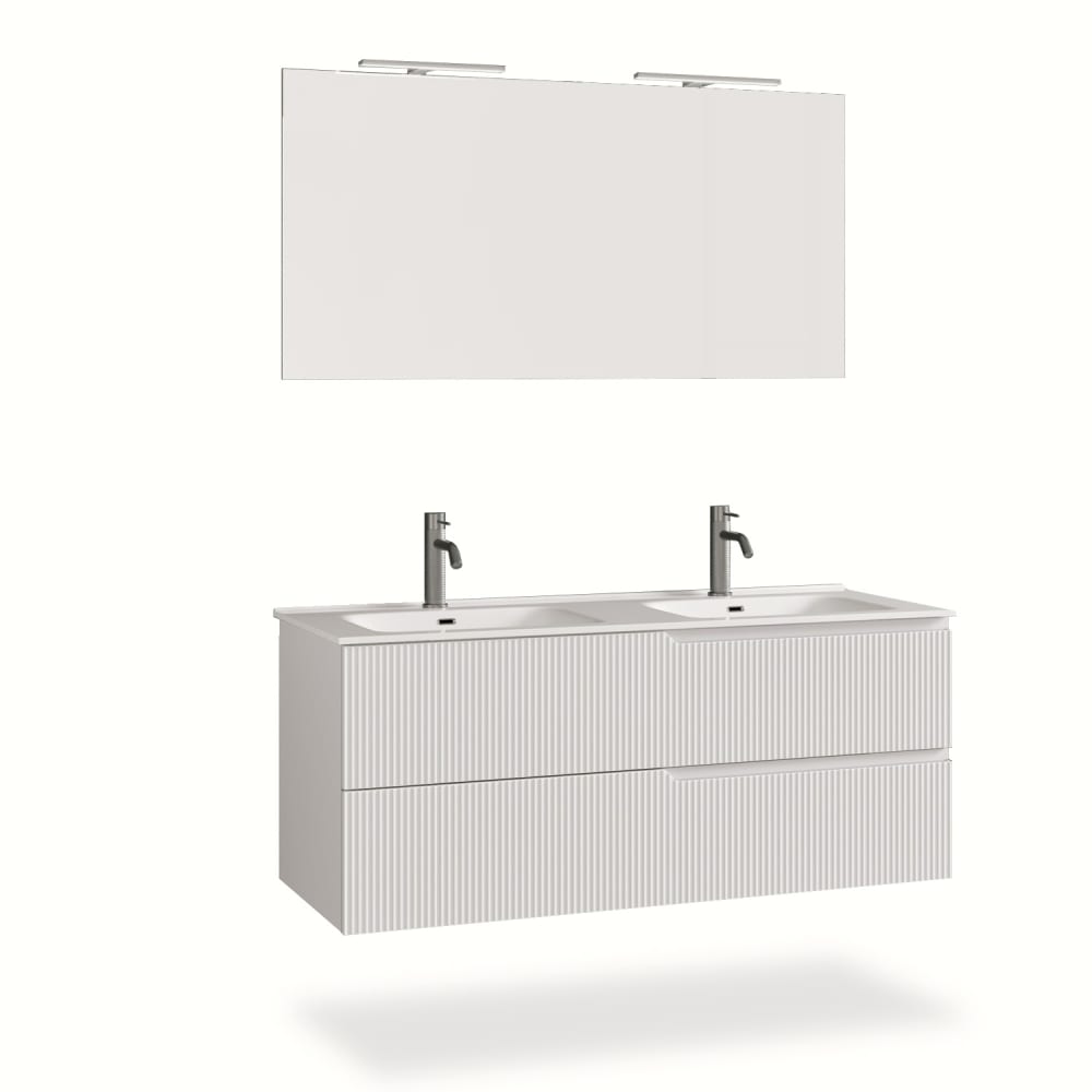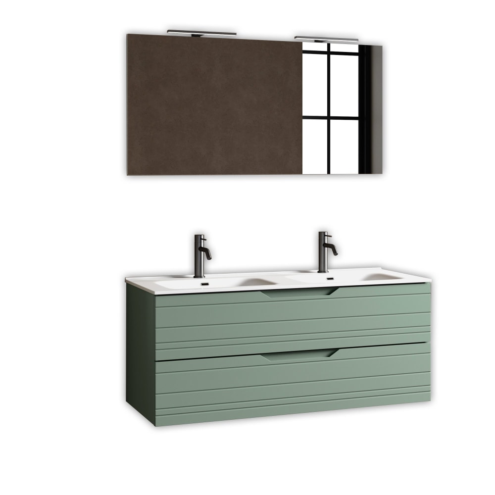 Composition de salle de bain double vasque 5 pièces en MDF vert sauge