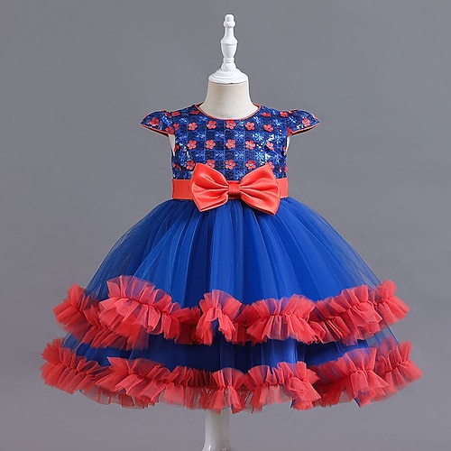 Abito da damigella d'onore bambina Ragazze Abito formale Abiti da sposa Feste Matrimonio Formale Principessa Bello Dolce Patchwork Rete Floreale Manica Corta Girocollo Blu Giallo Dai 4 anni in su