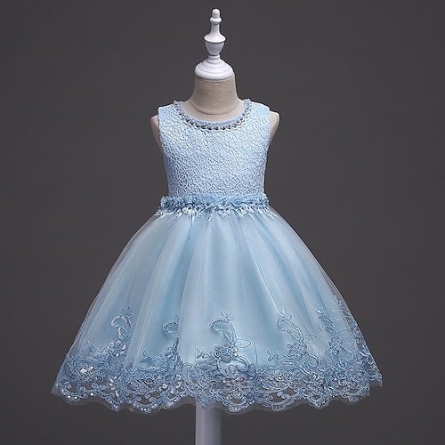 Abito da damigella d'onore bambina Ragazze Abito formale Abiti da sposa Feste Matrimonio Formale Moda Bello Dolce Pizzo Rete Senza Maniche Girocollo Blu Rosso 4-13 Anni