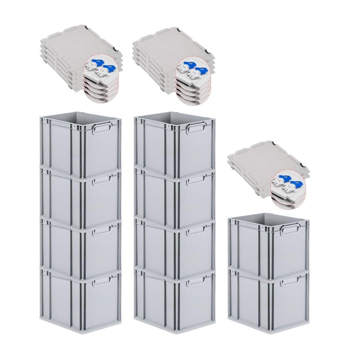 PROREGAL SuperSparSet 10x Eurobox NextGen Economy mit Scharnierdeckel & blauen Verschlüssen, Griffe zu, HxBxT 32x30x40cm, 30L, Eurobehälter, Box