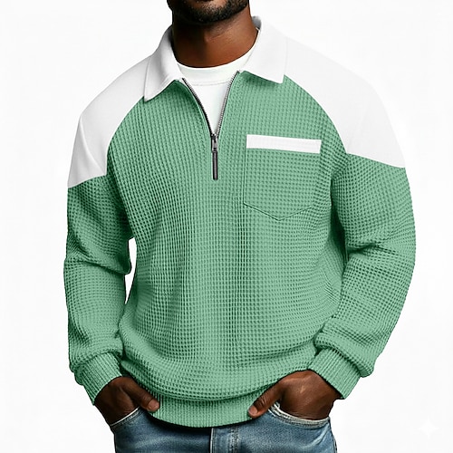 Per uomo Magliette Polo a Nido d'Ape Polo con zip a un quarto All'aperto Casual Zip a un quarto Manica Lunga Moda Moderno Tinta unica Patchwork Blocco di colore Autunno Primavera Autunno Autunno