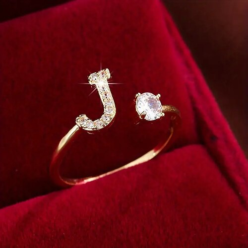 1 pezzo Anello For Per donna Zircone cubico Chiaro Quotidiano Regalo Ferie Rame Alfabetico