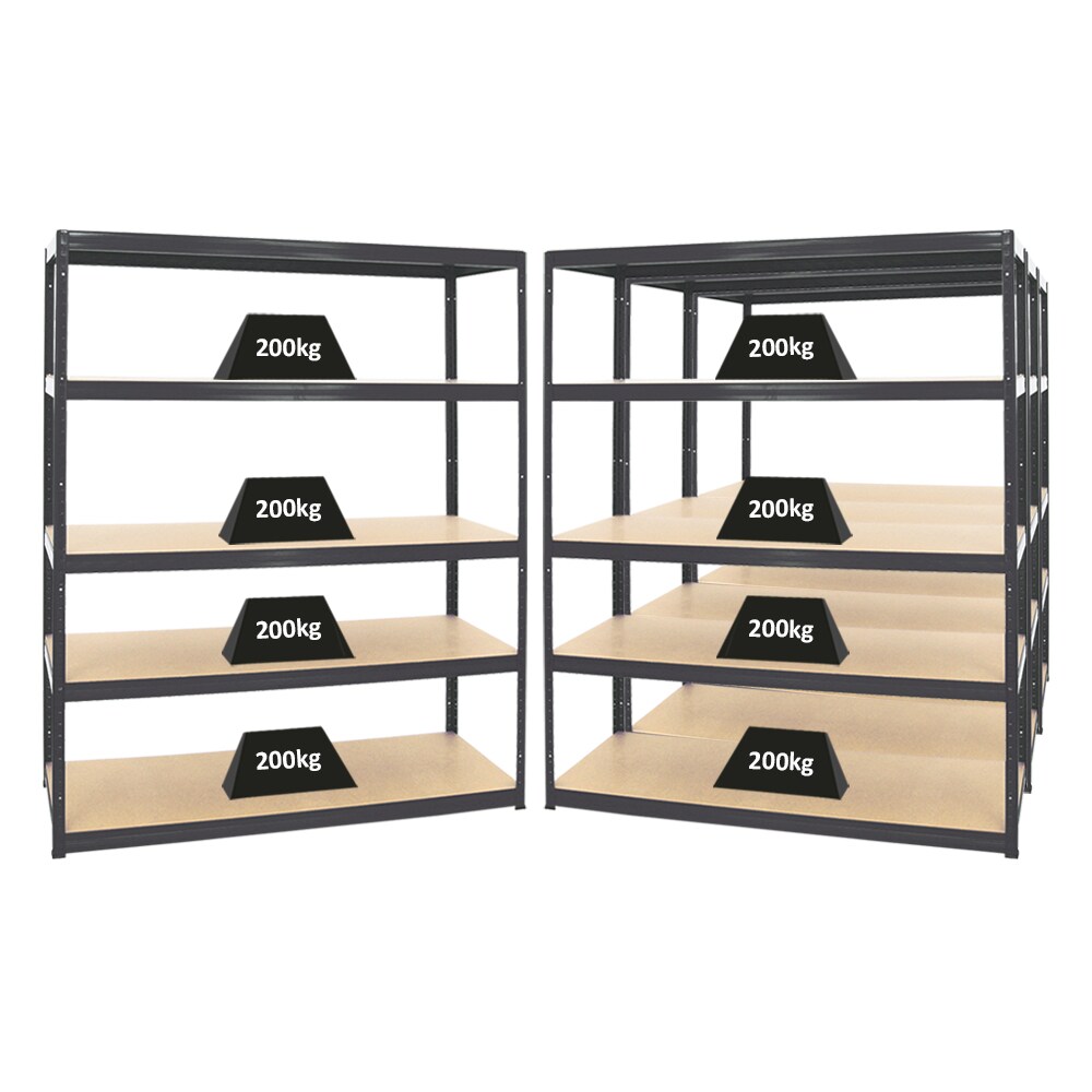 PROREGAL Mega Deal | 4x Schwerlastregal Giant Elephant | HxBxT 180x150x60 cm | Fachlast 200kg | Schwarz | Stecksystem Lagerregal Regalsystem 4 Stk.