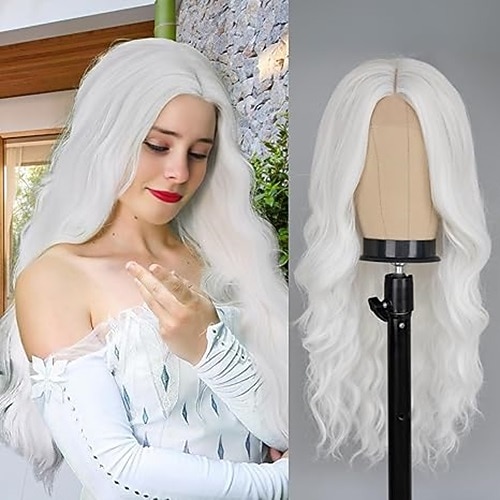 parrucca lunga per donna con riga centrale ondulata donne affascinanti parrucche realistiche dall'aspetto naturale parrucca sintetica in fibra resistente al calore per uso quotidiano alle feste