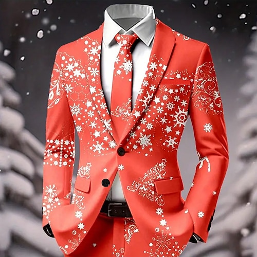 Per uomo Blazer Cappotto Natale Vacanza Casuale Casual Quotidiano Casual Autunno / Inverno 100% Poliestere Fiocco di neve Stampa 3D Bottoni Calore Termico Confortevole Monopetto Giacca Rosso 1 Rosso