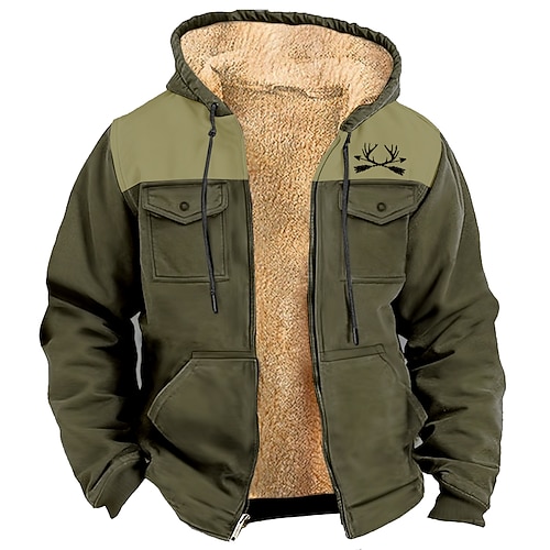 Per uomo Felpa con cappuccio a zip intera Felpa con cappuccio e zip Giacca in Pile Felpa con cappuccio in pile Nero Vino Blu Marrone Verde Con Cappuccio Renna Semplice Stampe Grafiche Cerniera Tasca