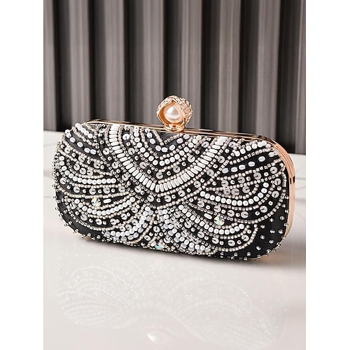 pochette da sera da donna decorata con perle di cristallo e design art déco vintage: elegante borsa per occasioni speciali e feste