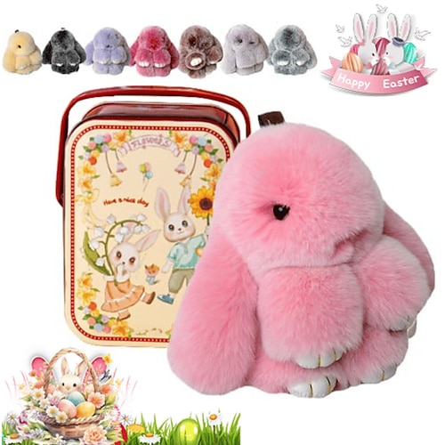 Portachiavi morbido a forma di coniglietto pasquale con latta, portachiavi di peluche a forma di coniglietto morbido fatto a mano, regalo di Natale per zaino, portachiavi con ciondolo per borsa