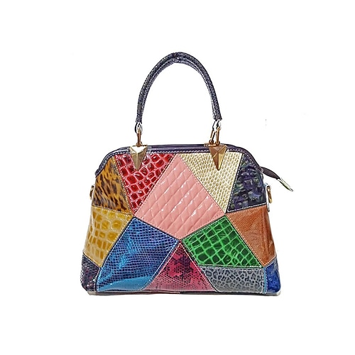 borsa da donna in pelle verniciata nera con motivo coccodrillo e tracolla - elegante borsa tote da ufficio per occasioni formali