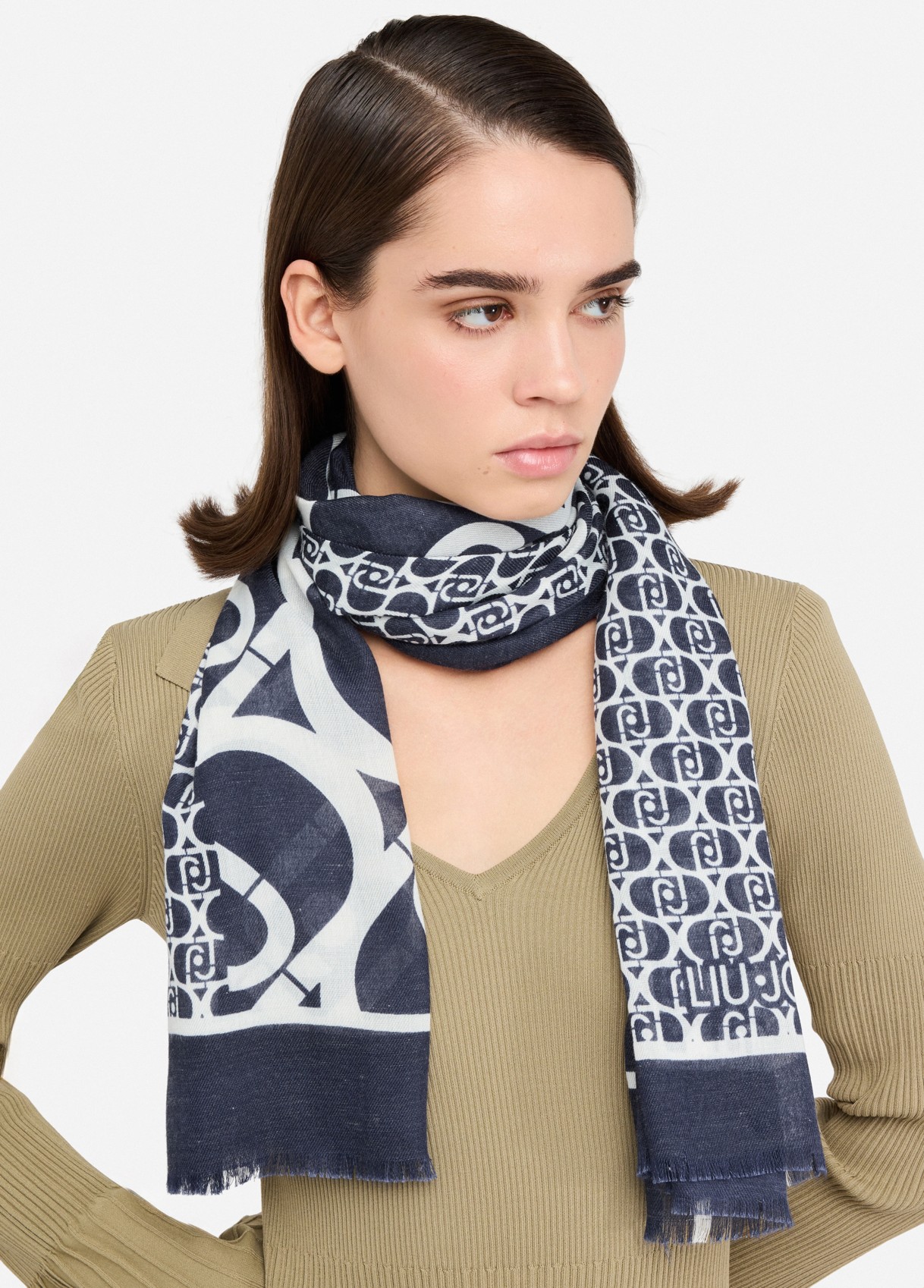 Liu Jo Étole En Coton Imprimé, Denim Bleu Foncé, Taille Unique