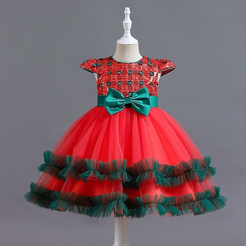 Bambino Da ragazza Vestito da festa A pois Senza maniche Prestazioni Compleanno Nodo della cravatta Bellissimo Dolce Poliestere Al ginocchio Vestito da festa Vestito svasato Abito linea A Estate 4