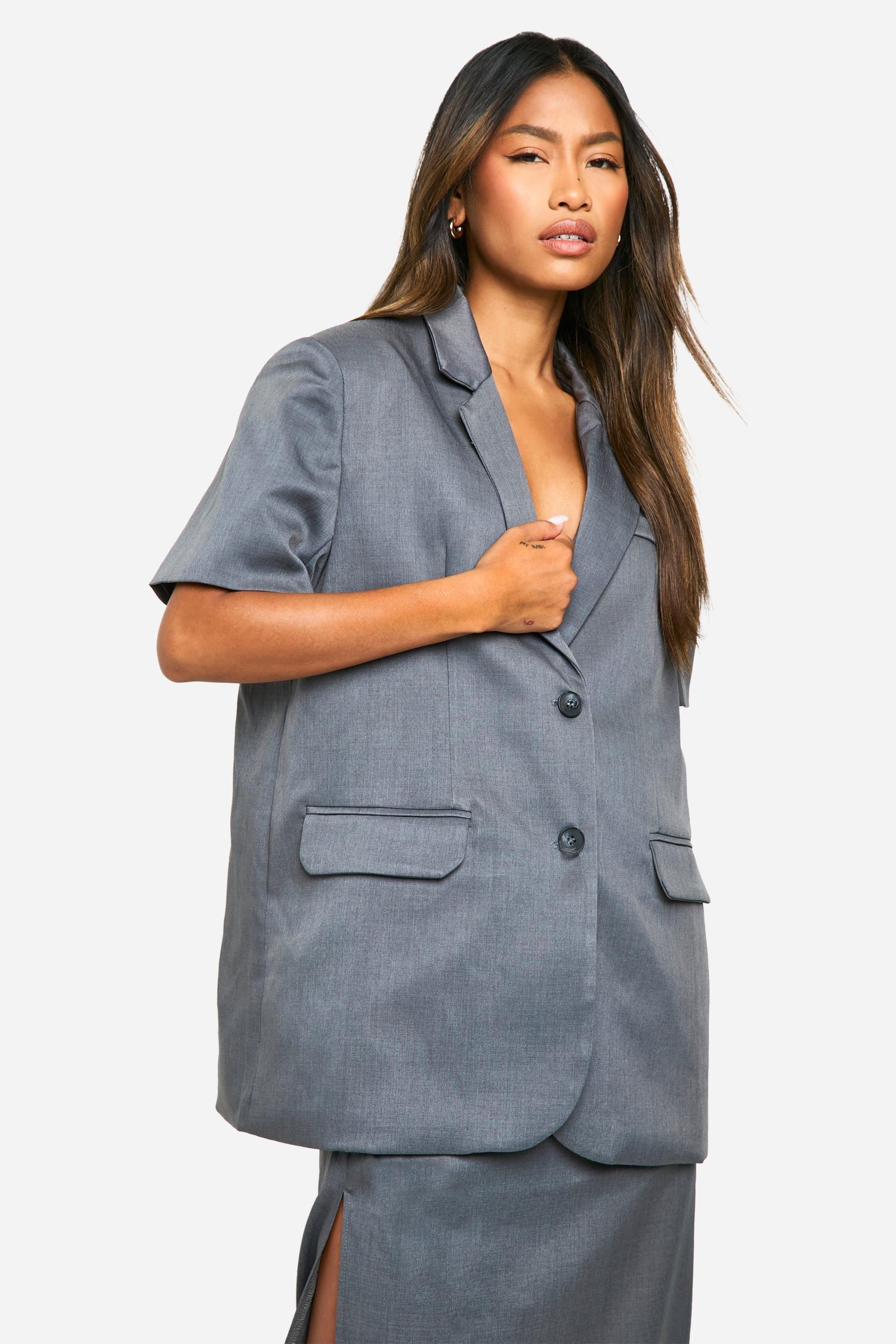 Boohoo Womens Marl Shoulder Pad Short Sleeved Oversized Longline Blazer - Charcoal - Size 6 UK | Boohoo Sale | Discount Designer Brands