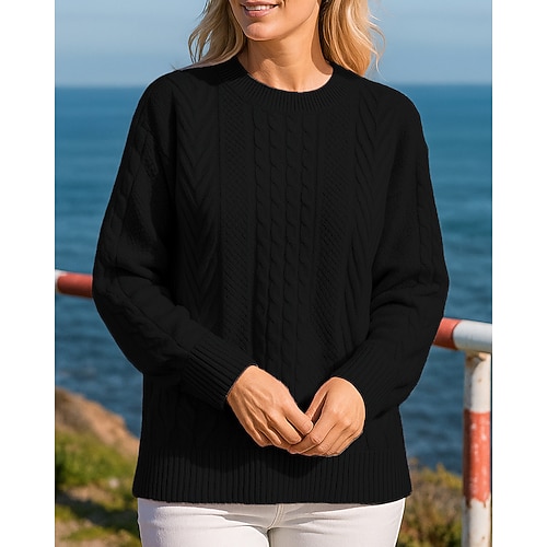 Per donna Top casual Pullover Maglione Maglia a trecce Manica Lunga Top Athleisure Autunno Tinta unita Caldo Di tendenza All'aperto Viaggio Sportivo abbigliamento sportivo Abbigliamento sportivo Blu