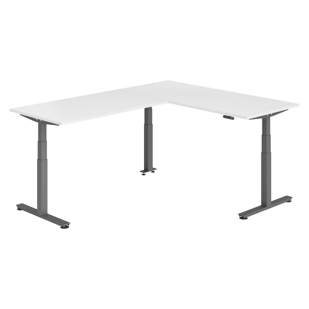 bümö Eckschreibtisch elektrisch höhenverstellbar L-Form: 180 x 240 cm in weiß, Gestell graphit - Stehschreibtisch mit Memory-Steuerung, elektrischer