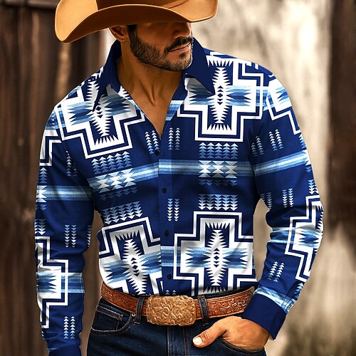 Per uomo Azteco Motivo Geometrico Etnico Camicia Camicia Western Camicia con Bottoni Manica Lunga Vintage Retrò All'aperto Casuale Abbigliamento da lavoro Primavera Autunno Collo ripiegato Stampa 3D