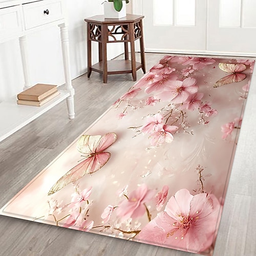 tappeto da corridoio con motivo floreale, tessuto di flanella stampato, antiscivolo, morbido, decorazione per il pavimento della casa, tappeto da ingresso, tappeto da bagno