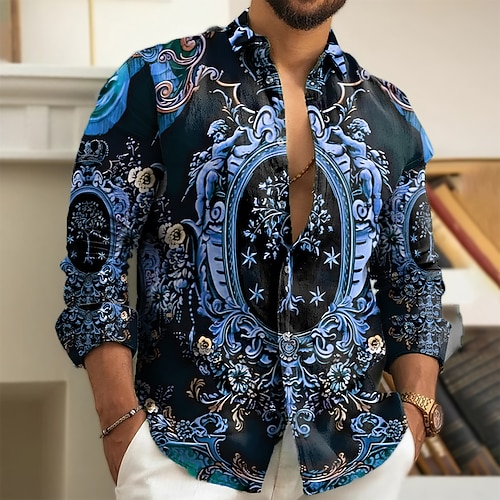 Per uomo Stampa Floreale Barocco Camicia Camicia con Bottoni Manica Lunga Vintage Retrò Ferie Casual Quotidiano Primavera Autunno Collo ripiegato Stampa 3D camicie con colletto Giallo Blu Verde