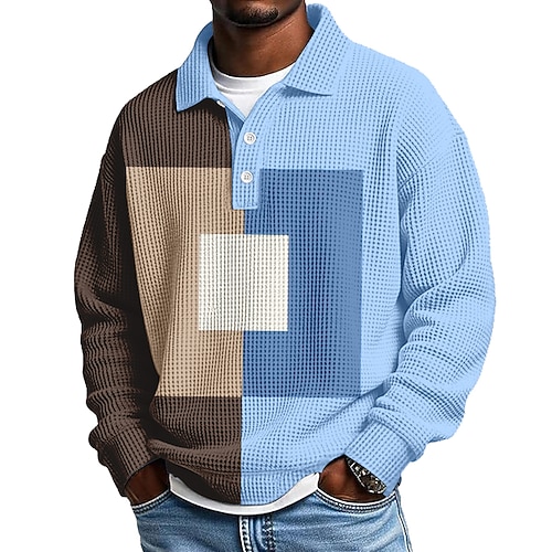 Per uomo Blocco di colori Geometrico Magliette Polo a Nido d'Ape Testurizzato Manica Lunga Magliette polo Bavero Casual Athleisure Abbigliamento quotidiano Stampa 3D Primavera Autunno Inverno Blu
