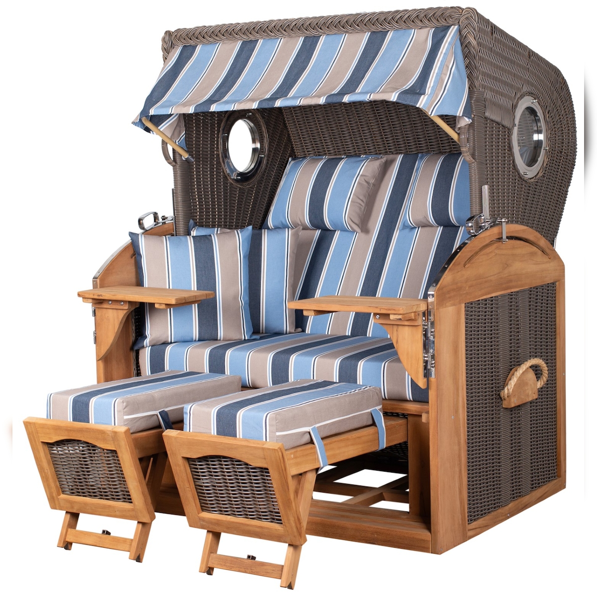 Mr. Deko Strandkorb - bene living - Ammersee Grande XL Teak Bullauge - PE shell - Modell 548 - 2,5-Sitzer inkl. Liftersystem