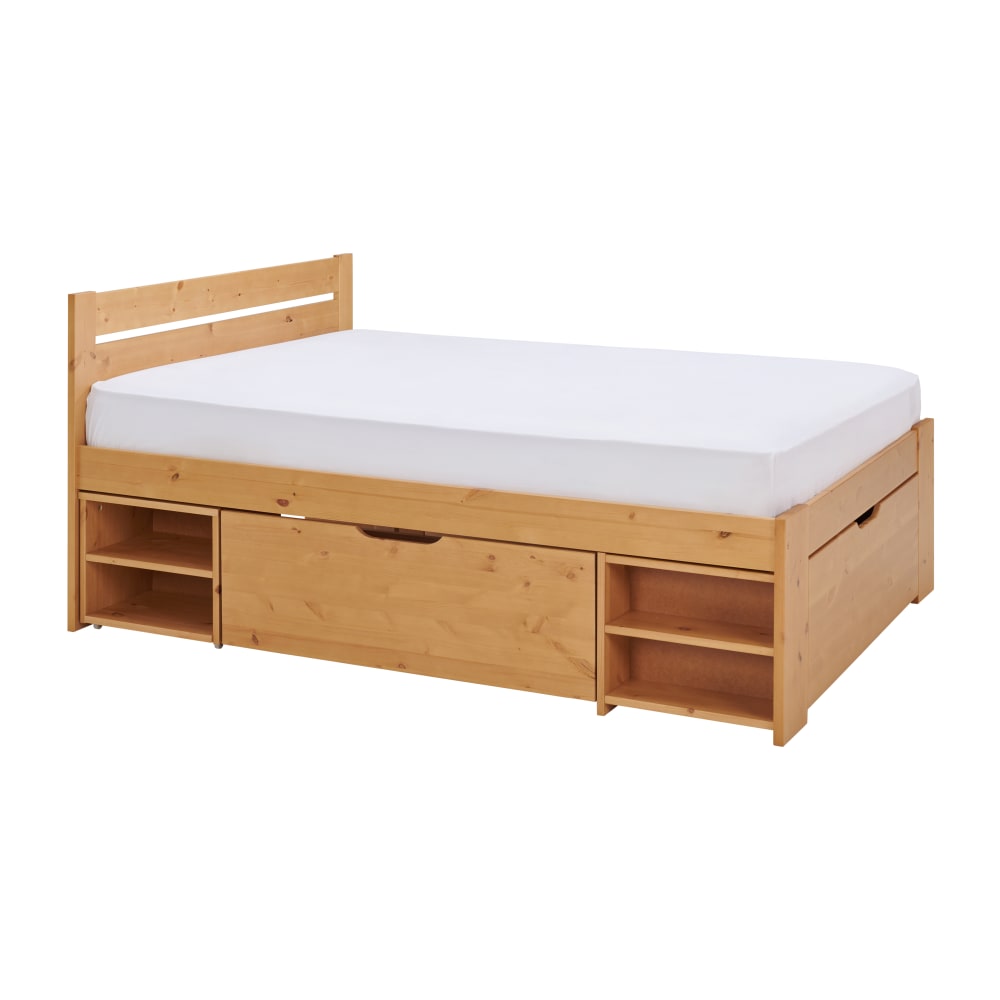 Lit rangement en bois massif miel 140 x 190 cm