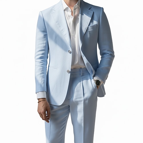 Uomo Casuale Matrimonio in Spiaggia Completi in Lino Bavero classico Nero Bianco Moda Festa Tinta unita Vestibilità su misura 2 pezzi Monopetto Due Bottoni