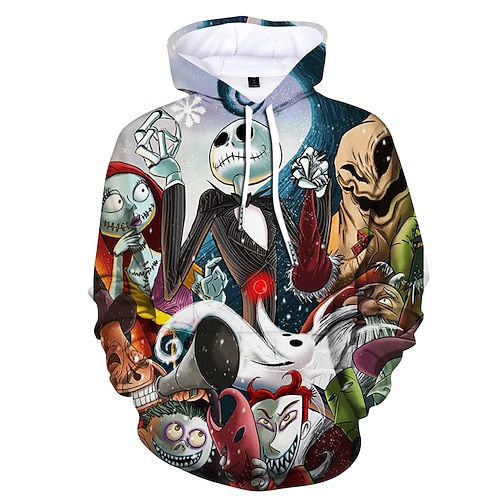 Jack Skellington Felpa con cappuccio Cartone animato Manga Manga 3D Tasca frontale Grafica Tasca a marsupio Per Da coppia Per uomo Per donna Per adulto Halloween Carnevale Mascherata Stampa 3D Casual