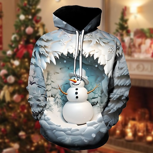 Natale Pupazzo di neve Felpa con cappuccio Felpa con cappuccio natalizia divertente 3D Natale Tasca frontale Grafica Per Da coppia Per uomo Per donna Per adulto Natale Carnevale Stampa 3D Feste