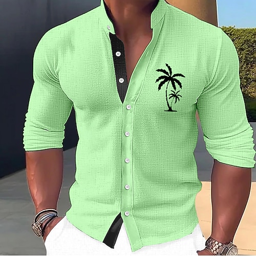 Per uomo Blocco di colori Albero di Cocco Foglie Camicia Camicia hawaiana estiva Camicia Aloha Manica Lunga Camicia Collo alla coreana Moda Streetwear Designer All'aperto Streetwear Casuale Bianco