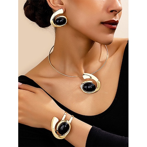 set di gioielli in lega bohémien da donna con pietre turchesi: collana, orecchini e bracciale, disponibili in più colori, perfetti per occasioni informali e festive