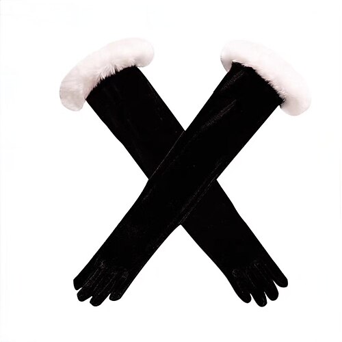 guanti natalizi da donna in velluto rosso con finiture in pelliccia sintetica, elegante accessorio natalizio per feste di Natale e riunioni festive