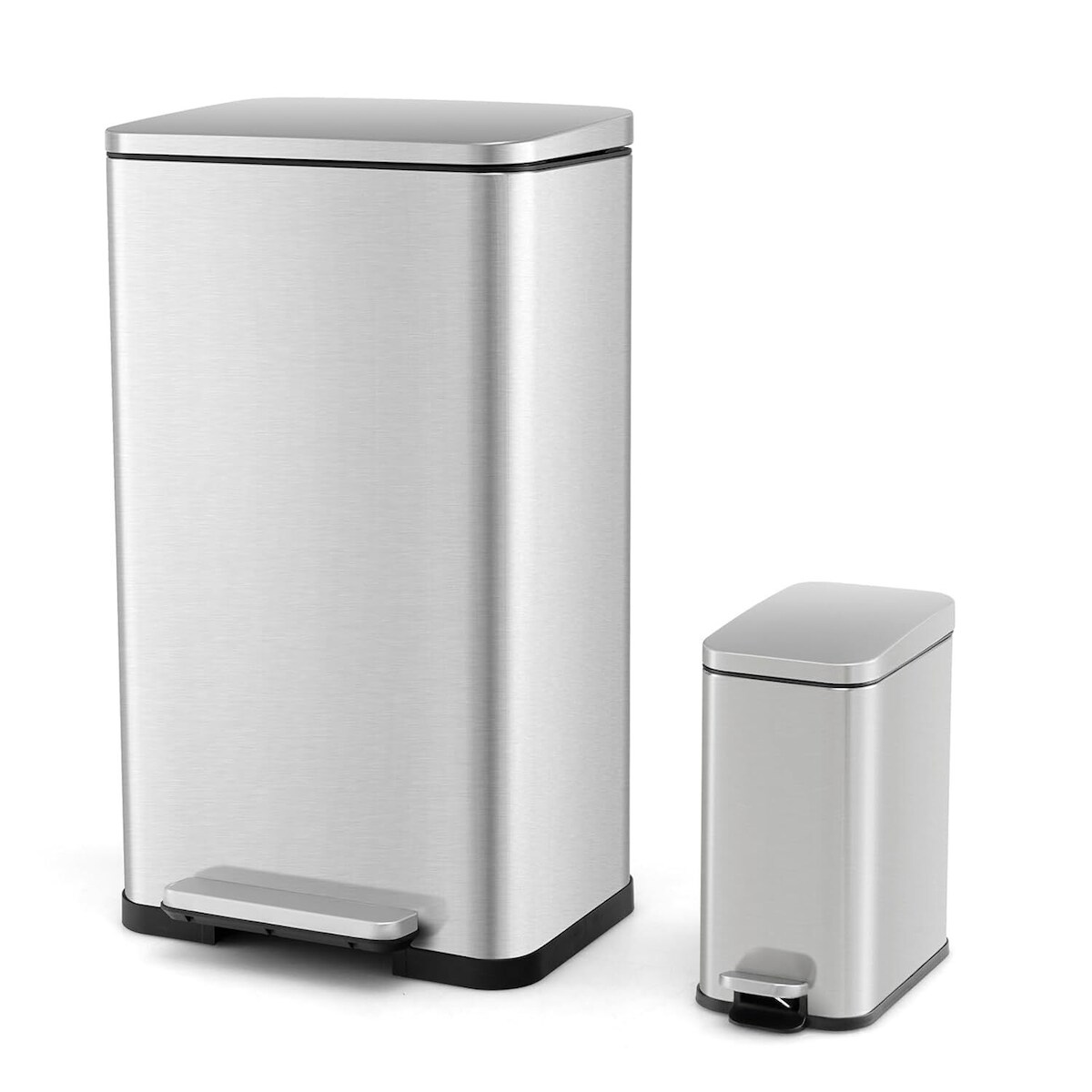 COSTWAY Mülleimer-Set aus 2 Teilen, 40 L + 6 L Edelstahl, Pedaleimer mit abnehmbaren Inneneimern & Soft-Close-Deckel
