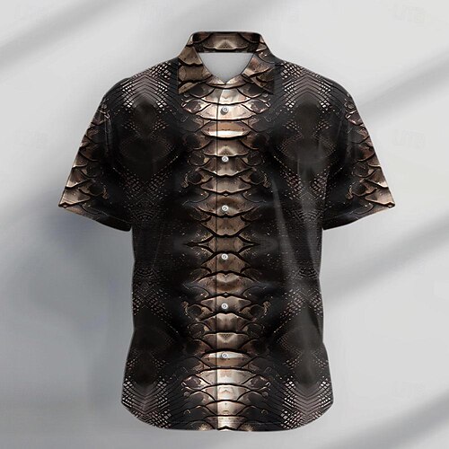 Per uomo Fantasia pelle di serpente Camicia Camicia con bottoni Manica corta Informale Scuro Da mare Giornaliero Evento Estate Collo ripiegabile Camicie con colletto Bottoni Stampa Nero Marrone
